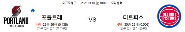 3월10일 10:00 포틀랜드 VS 디트로이트