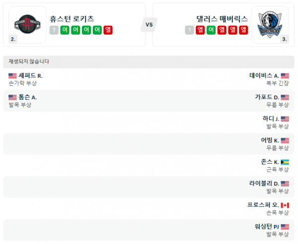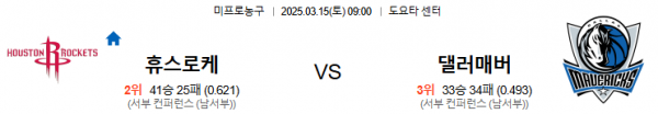 - 2025-02-09: 댈러스 116-105 휴스턴 (원정 패)