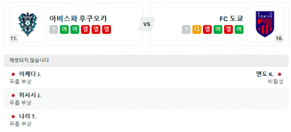 부연 설명: FC 도쿄는 아비스파 후쿠오카와 비슷한 성적을 기록 중이며, 리그 중위권에 위치하고 있습니다. 경기마다 기복이 있으며, 특히 홈 및 원정 경기에서의 일관된 경기력이 부족한 상황입니다.
