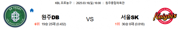 서울 SK 나이츠가 경기 스타일과 현재 실력을 바탕으로 원주 DB를 상대로 우위를 점할 가능성이 높습니다. 다만 원주 DB는 홈에서의 경기이므로 이에 대한 어드밴티지가 있을 수 있습니다. 두 팀의 경기는 원주 DB의 수비력과 서울 SK의 공격력이 어떤 양상으로 펼쳐질지에 따라 결과가 달라질 것입니다.