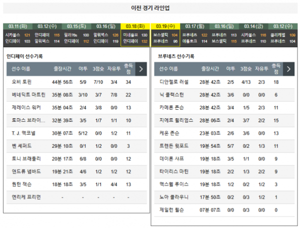 - 25-03-19: 보스턴 셀틱스 104:96 (원정 패)