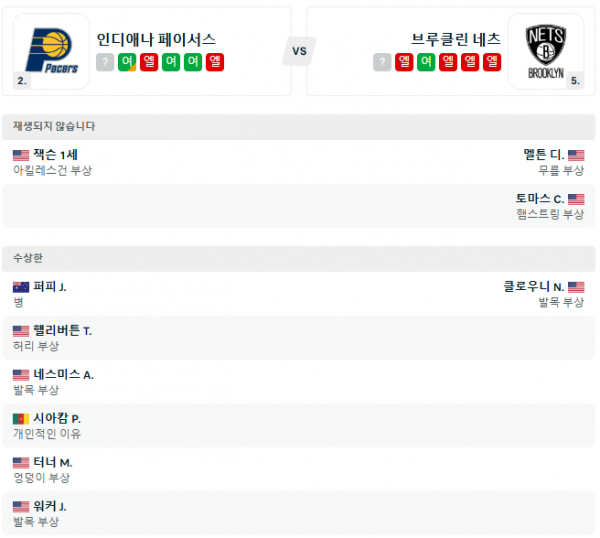 인디애나 페이서스와 브루클린 네츠의 최근 경기 분석