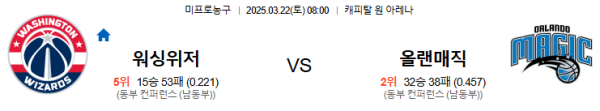 3월22일 08:00 워싱턴 VS 올랜도