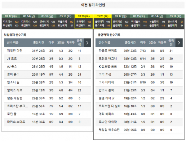 25-03-15: 미네소타 울브스 118:111 (원정 패) - 수비의 빈틈으로 인해 패배.