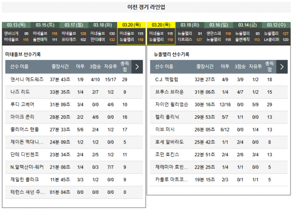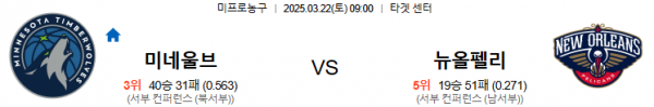 3월22일 09:00 미네소타 VS 뉴올리언즈