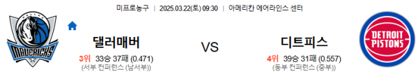 3월22일 09:30 댈러스 VS 디트로이트