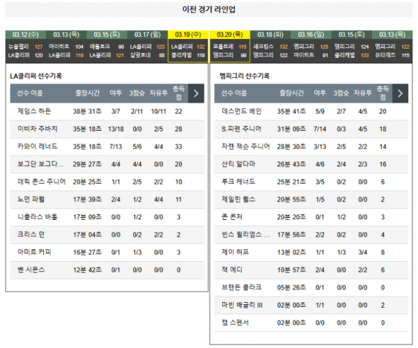 3월22일 11:30 LA클리퍼스 VS 멤피스