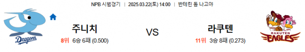 3월22일 14:00 주니치 VS 라쿠텐