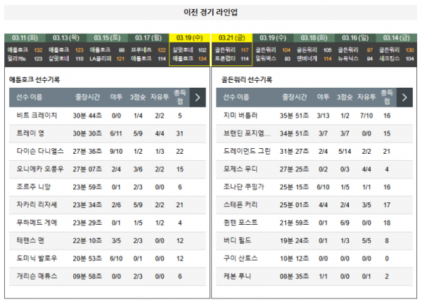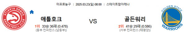 3월23일 08:00 애틀랜타 VS 골든스테이트