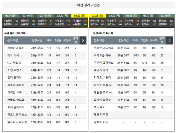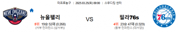 3월25일 09:00 뉴올리언즈 VS 필라델피아