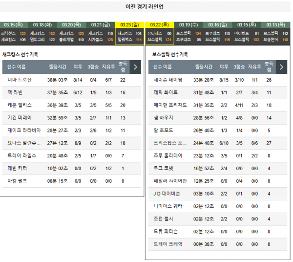 보스턴 셀틱스 vs 새크라멘토 킹스