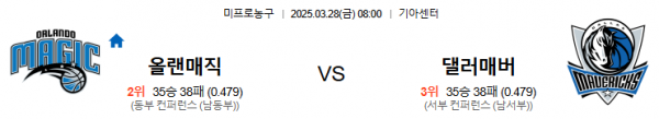 3월28일 08:00 올랜도 VS 댈러스