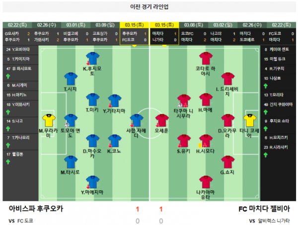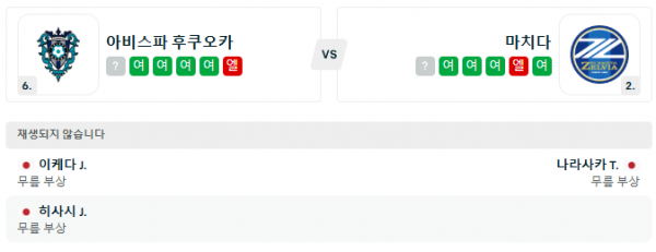 1. 후쿠오카 0:3 마치다 (홈 패)