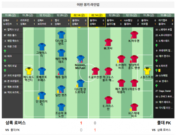 2025-02-14: 몰데FK 0-1 샴록R (홈 패) - 실점으로 인한 패배.