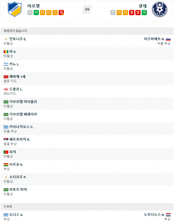 25-02-14: 아포엘 2-2 (홈 무) - 양 팀 간 치열한 경기 양상.