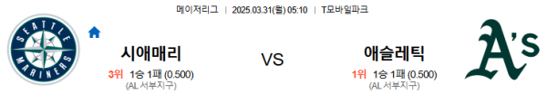 3월31일 05:10 시애틀 VS 애슬레틱스
