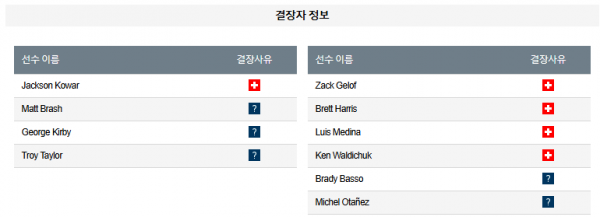 **시애틀 매리너스 vs 오클랜드 애슬레틱스: 양팀의 리그 현재 순위 및 최근 10경기 승패 전적**