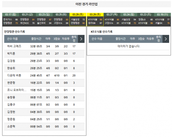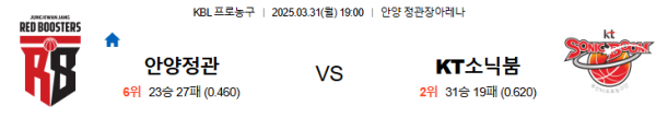 3월31일 19:00 안양정관장 VS 수원KT