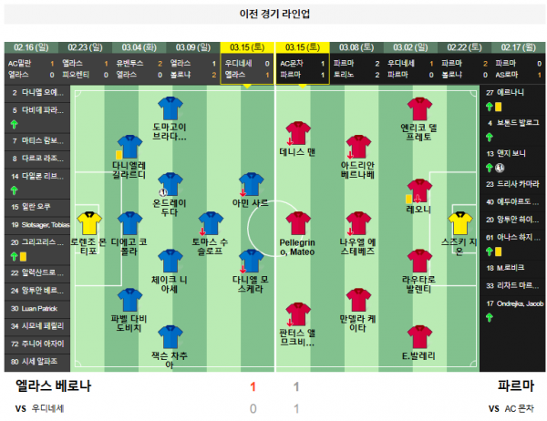 2025-03-15: 베로나 1-1 파르마 - 원정 무