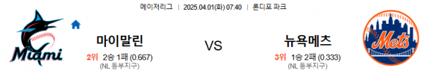 4월1일 07:40 마이애미 VS 뉴욕메츠