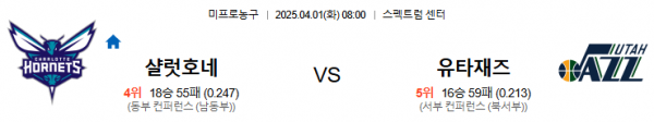 샬럿 호네츠는 최근 5경기에서 1승 4패로 고전하고 있으며, 공격과 수비의 조화가 필요한 상황입니다. 유타 재즈는 극심한 부진에 빠져 있는 모습으로 뚜렷한 개선책이 시급합니다.