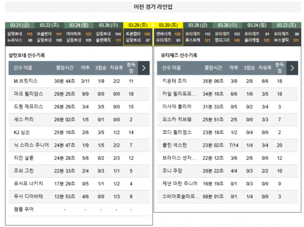 부연 설명: 유타 재즈는 현재 홈과 원정 할 것 없이 모두 부진한 경기력을 보여주고 있습니다. 수비가 허술해 경기 초반부터 실점을 허용하면서 리드를 뺏겨 경기를 불리하게 이끌어가고 있습니다.