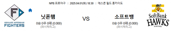 4월1일 18:30 니혼햄 VS 소프트뱅크