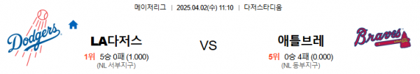 4월2일 11:10 LA다저스 VS 애틀랜타