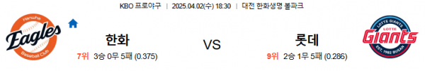 4월2일 18:30 한화 VS 롯데