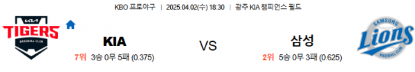 4월2일 18:30 기아 VS 삼성