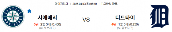 시애틀 매리너스 VS 디트로이트 타이거스: 경기 분석 및 예상