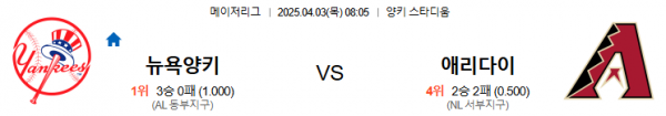 4월3일 08:05 뉴욕양키스 VS 애리조나