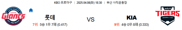 4월8일 18:30 롯데 VS 기아