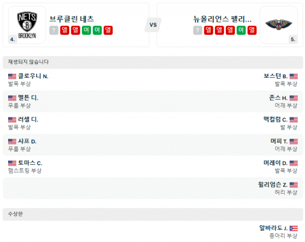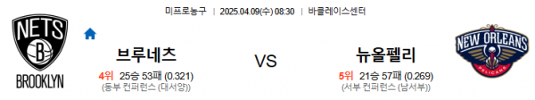 4월9일 08:30 브루클린 VS 뉴올리언즈