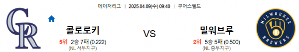 4월9일 09:40 콜로라도 VS 밀워키