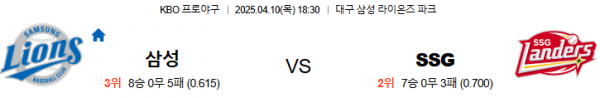 4월10일 18:30 삼성 VS SSG