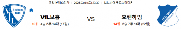 3월1일 23:30 VfL보훔 VS 호펜하임