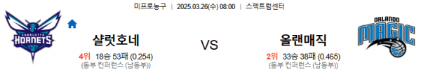 분석: 두 팀은 최근 10번 맞대결에서 올랜도 매직이 6승을 기록하며 우위를 점하고 있습니다. 특히 올랜도 매직은 샬럇 호네츠를 상대로 원정에서도 견고한 경기력을 보여주고 있습니다. 샬럇 호네츠는 올랜도 매직과의 경기에서 수비 측면에서 어려움을 겪고 있는 모습입니다.
