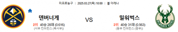 2025-02-28: 밀워키 121-112 덴버 (원정 패)