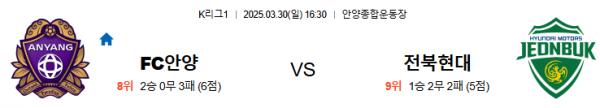 분석: FC 안양은 최근 5경기에서 2승 3패로 다소 기복 있는 성적을 기록, 특히 원정에서 긍정적인 성과를 보였습니다. 반면 전북 현대는 1승 2무 2패로 상대적 부진을 겪고 있으며, 수비적인 불안정함이 경기 결과에 영향을 미치고 있는 상황입니다.