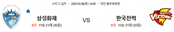- 2025-01-28: 삼성화재 3-0 한국전력