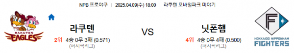 4월9일 18:00 라쿠텐 VS 니혼햄