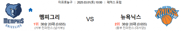 3월1일 10:00 멤피스 VS 뉴욕닉스