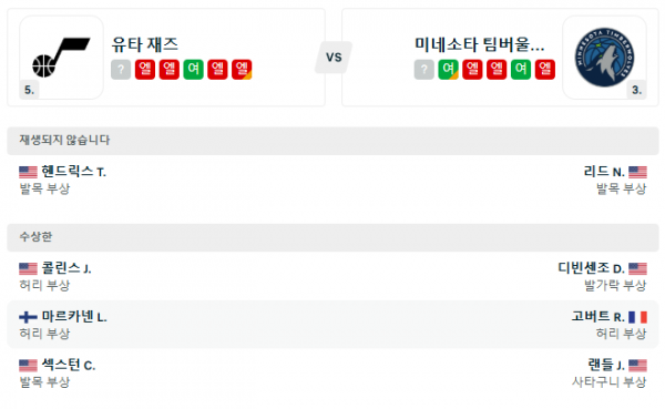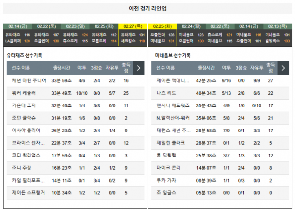 유타 재즈는 최근 5경기에서 2승 3패로 수비 강화를 통해 개선이 필요합니다. 미네소타 팀버울브스는 3승 2패의 성적을 유지하며, 공격과 수비의 밸런스가 잘 맞춰진 모습을 보이고 있습니다.