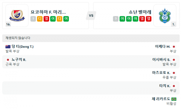 부연 설명: 요코하마 F-마리노스는 현재 리그에서 중하위권에 머물고 있지만, 최근 경기에서는 비교적 안정적인 경기력을 보이고 있습니다. 득점력은 괜찮은 편이나, 실점을 줄이는 것이 필요한 상황입니다.
