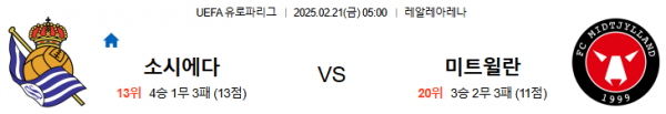 2월21일 05:00 레알소시에다드 VS 미트윌란
