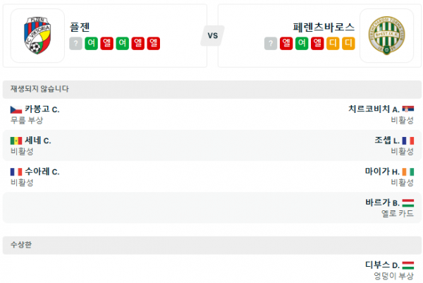 2022-11-13: 빅토리아 플젠 1-1 페렌츠바로시 (우호전)