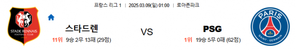 3월9일 01:00 스타드렌 VS 파리생제르망