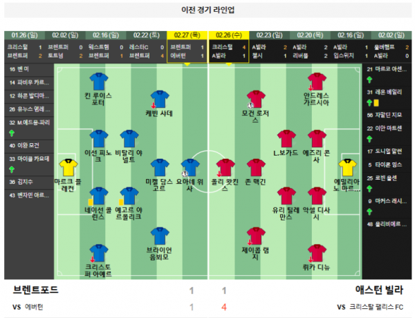 - 24-12-05: 애스턴 빌라 3-1 브렌트포드 (원정 패)