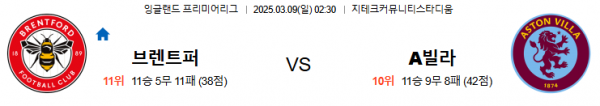3월9일 02:30 브렌트퍼드 VS 아스톤빌라